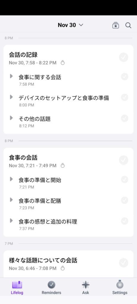 - Limitlessのライフログデータより、以下をGemini API を使ってまとめる